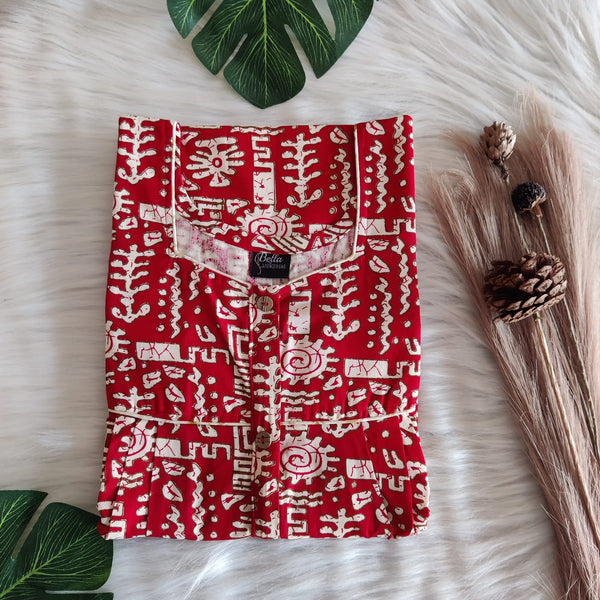 Red And Cream Printed Gujari Cotton Button Zip Nighty | Free Size | Chest Width 44″| Length 55″-56″