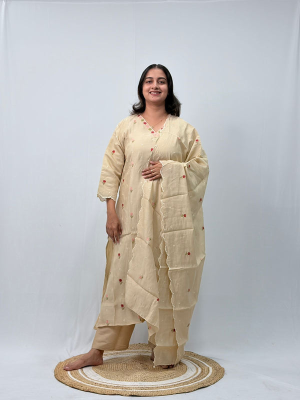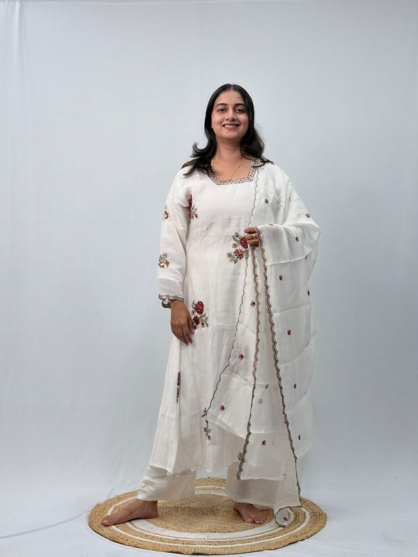 Ivory Floral Embroidered 3 Piece Set