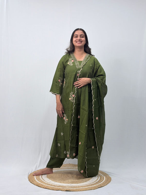 Olive Green Embroidered 3 Piece Set