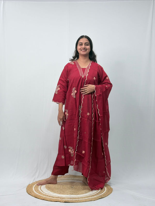 Maroon Embroidered 3 Piece Set