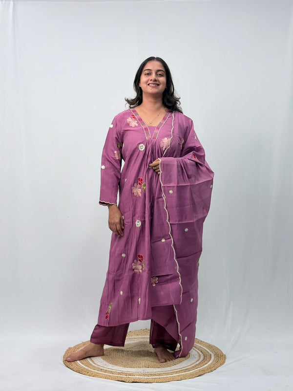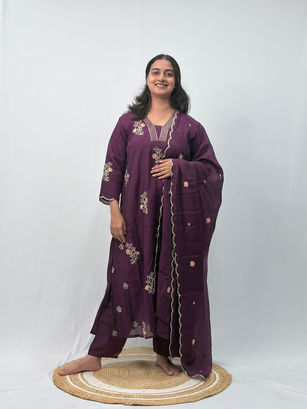 Violet Embroidered 3 Piece Set