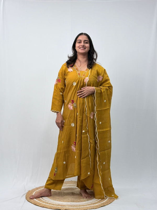 Mustard Yellow Embroidered 3 Piece Set