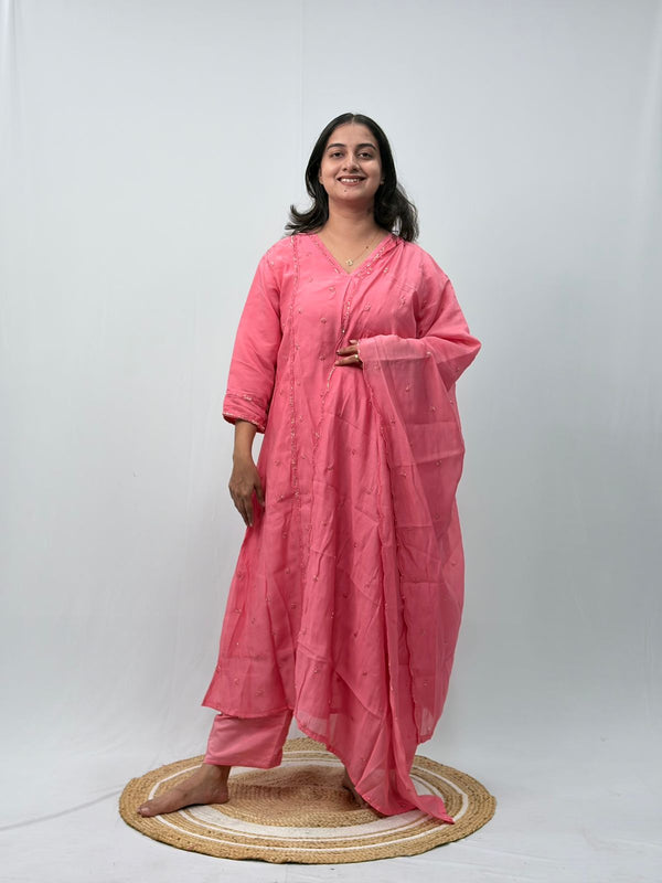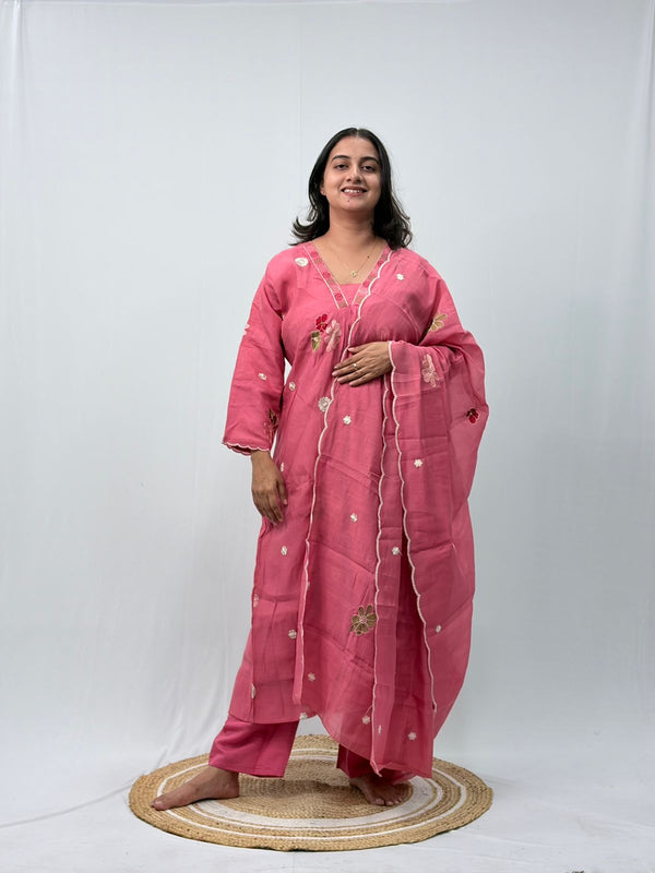 Mauve Pink Floral Embroidered 3 Piece Set
