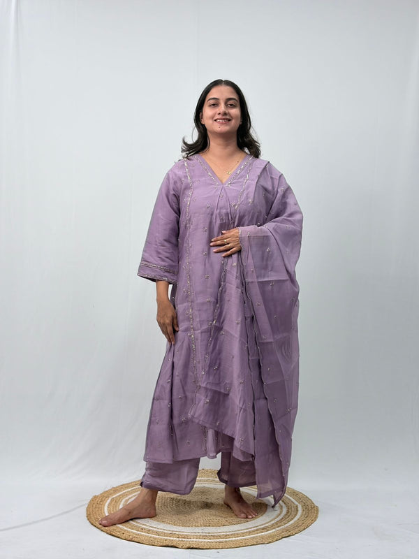 Lavender Embroidered 3 Piece Set