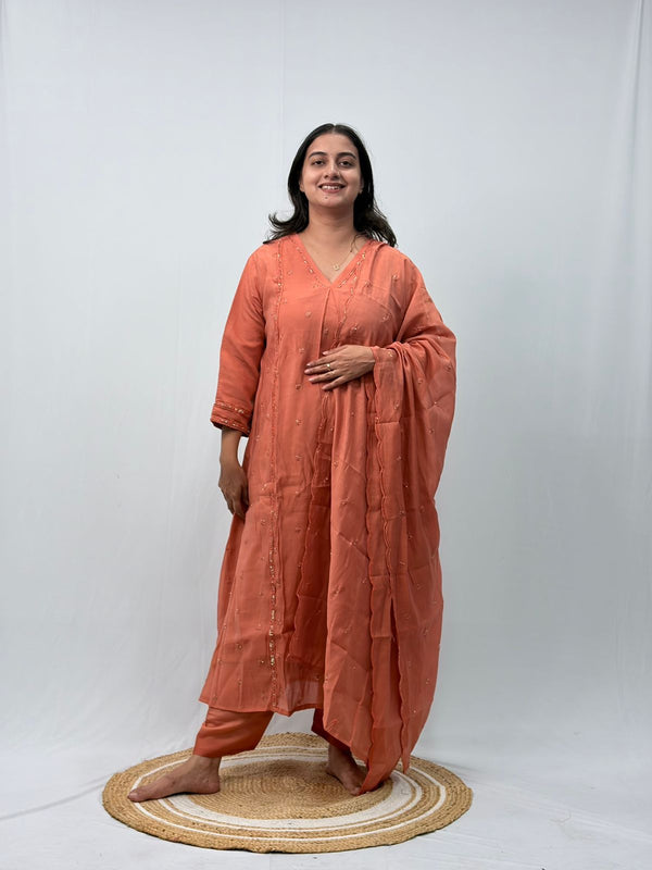 Pastel Orange Embroidered 3 Piece Set