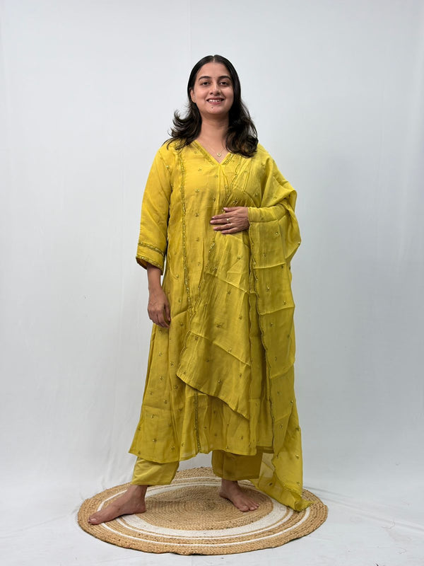 Lemon Yellow Embroidered 3 Piece Set