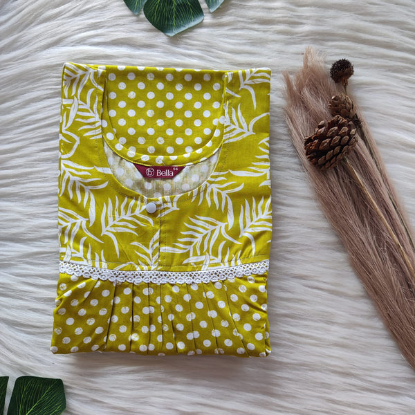 Green And White Dot Printed Premium Cotton Lace Nighty | Free Size | Chest Width 44″| Length 54″-56″