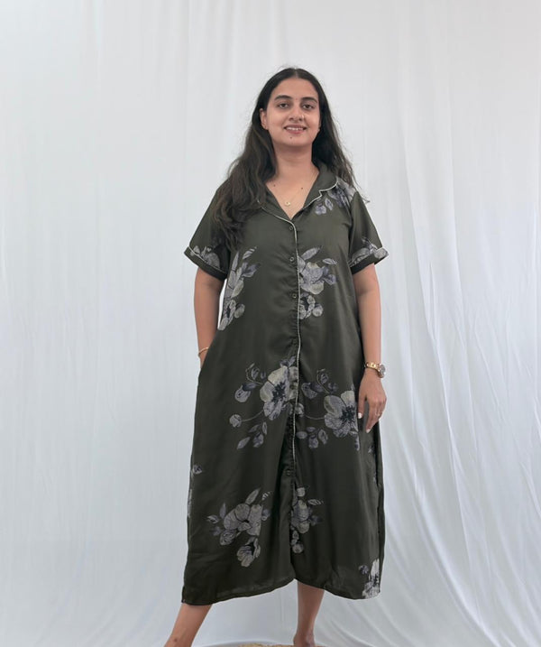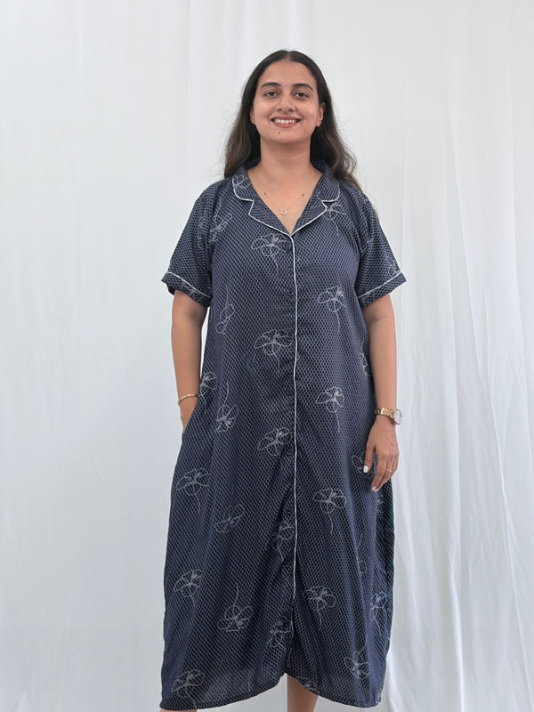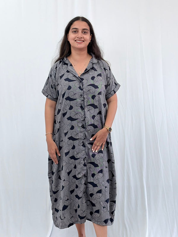 Grey Printed Alpine Long Polo Shirt Gown | Free Size | Chest Width 44″| Length 44″