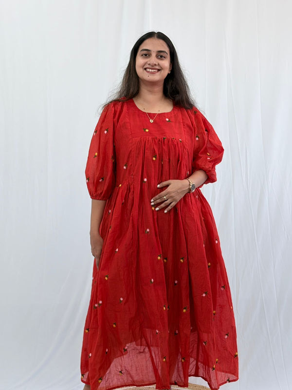 Maroon Mul Chanderi Feeding Dress With Two Side Invisible Zip | Free Size | 46" length