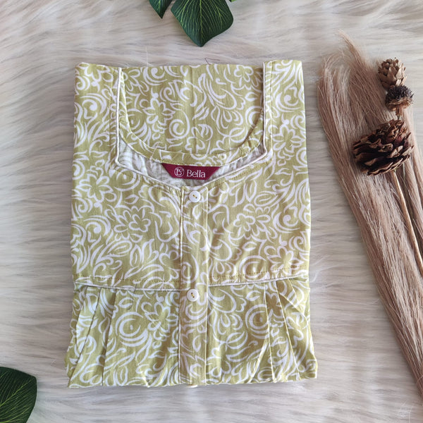 Pastel Green Printed Premium Cotton Button Zip Nighty | Free Size | Chest Width 44″| Length 55″-56″