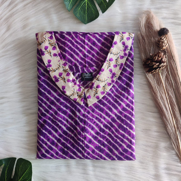 Dark And Pale Purple Printed Premium Cotton Peter Pan Collar Long Zip Feeding Nighty | Free Size | Chest Width 44″| Length 56″