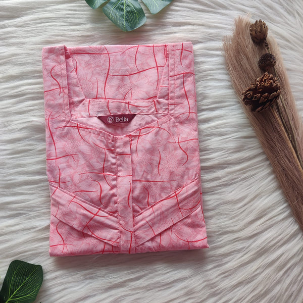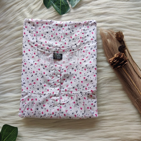 Pale Pink Printed Pure Cotton Plus Size Pleated Zip Nighty | Chest Width 50″| Length 54″-55″