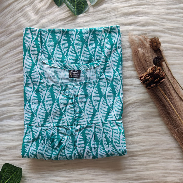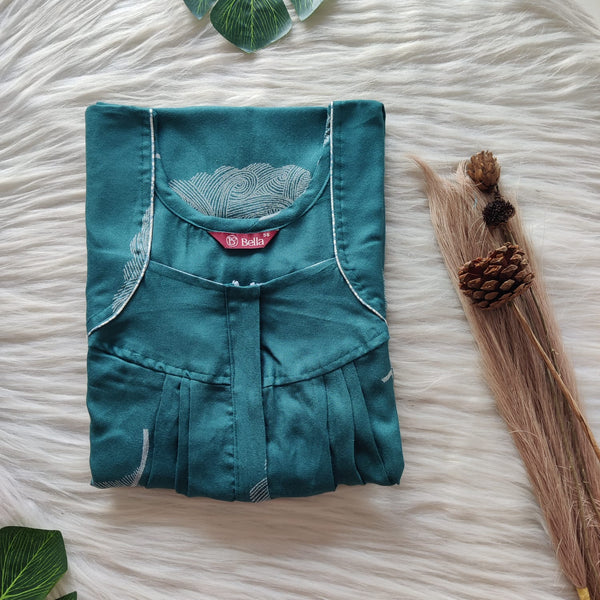 Teal Green Printed Alfine Plus Size Pleated Zip Nighty | Chest Width 50″| Length 54″-56″