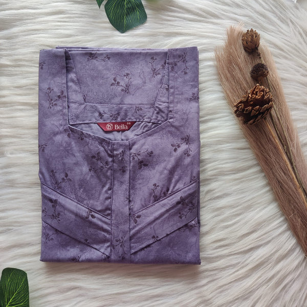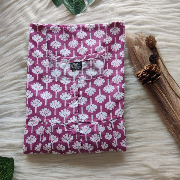 Mauve Printed Premium Cotton Plus Size Full Open Labour Room Nighty| Chest Width 48"-50"| Length 54"-56"