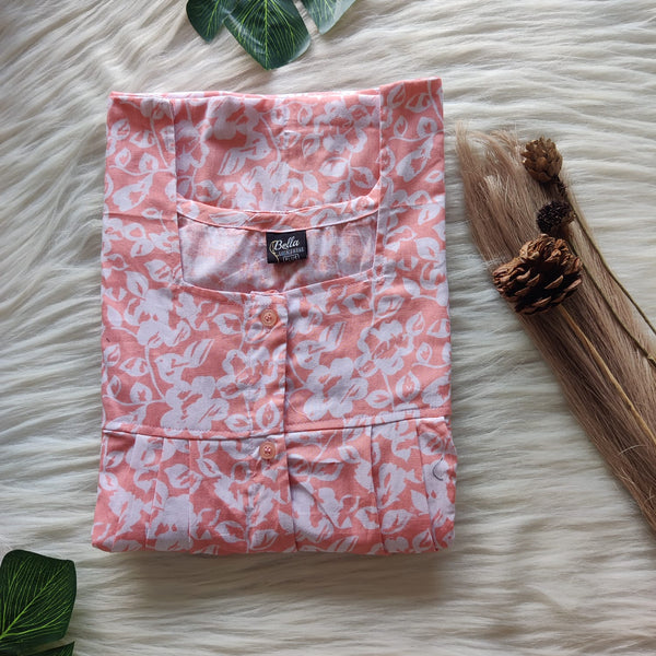 Peach Printed Plus Size Pure Cotton Horizontal Zip Feeding Nighty | Chest Width 48″-50″| Length 54″-56″