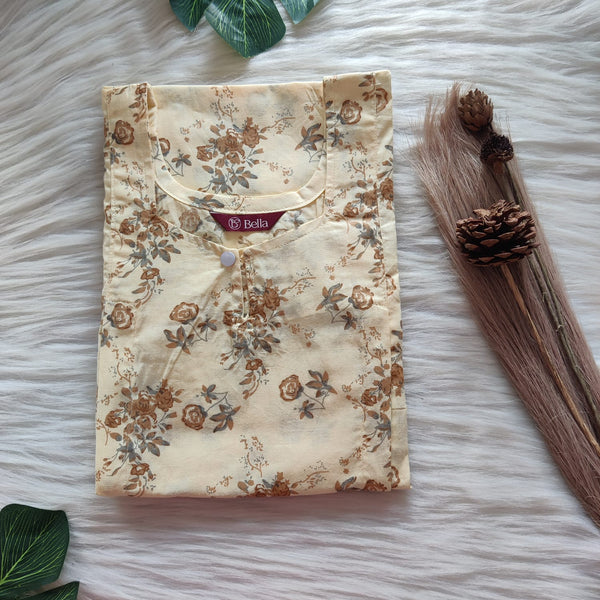 Pastel Brown Printed Premium Cotton Plus Size Full Open Labour Room Nighty| Chest Width 48"-50"| Length 54"-56"
