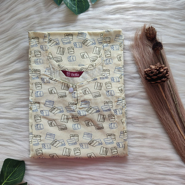 Yellow Printed Pure Cotton Plus Size Pleated Zip Nighty | Chest Width 50″| Length 54″-55″