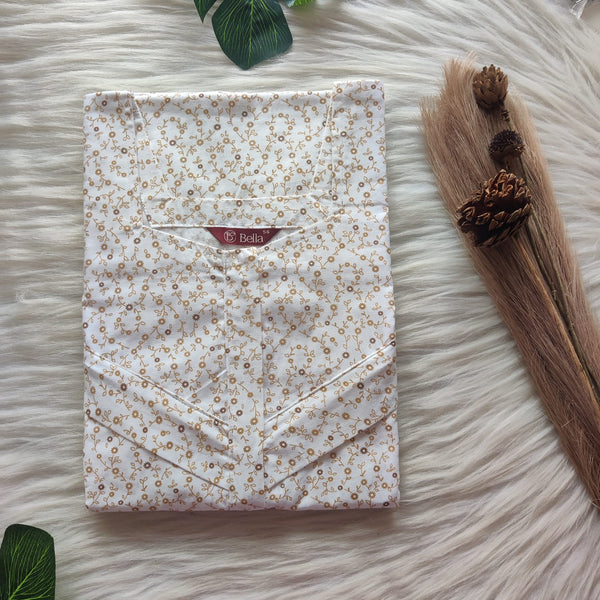 Brown Printed White Pure Cotton Plus Size Pleated Zip Nighty | Chest Width 50″| Length 54″-55″