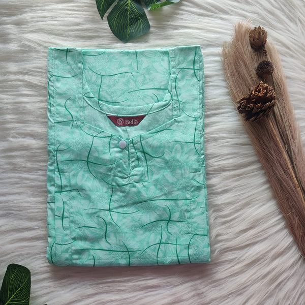 Aqua Green Printed Premium Cotton Plus Size Full Open Labour Room Nighty| Chest Width 48"-50"| Length 54"-56"