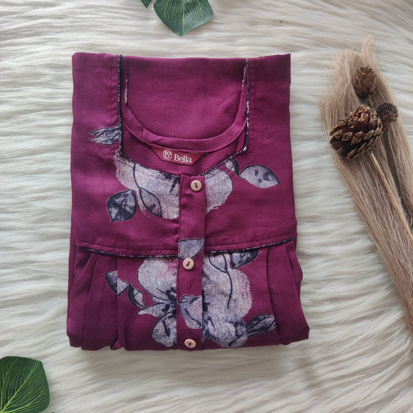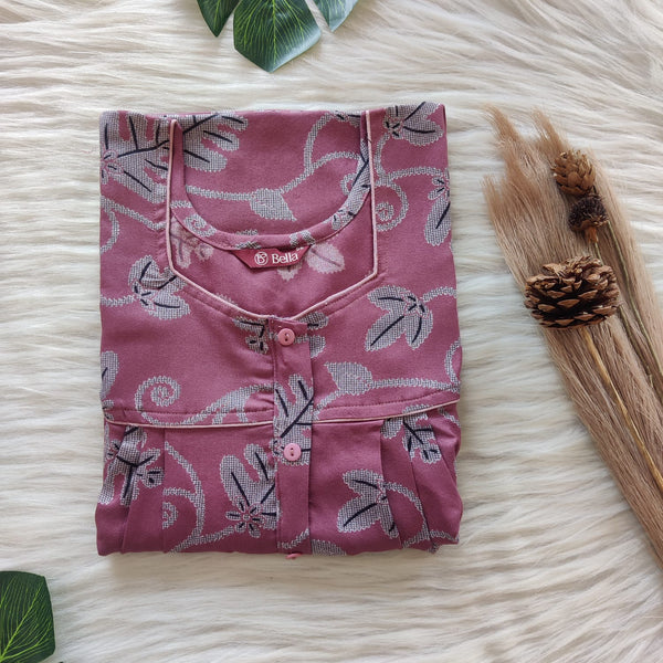 Mauve Printed Alpine Plus Size Button Zip Nighty | Free Size | Chest Width 50″| Length 55″-56″