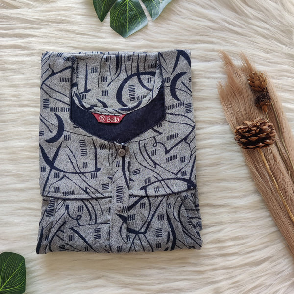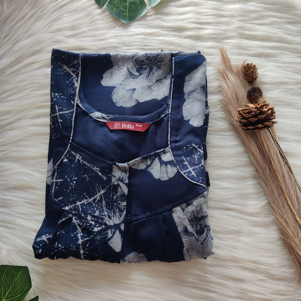 Navy- Blue Printed Alfine Plus Size Pleated Zip Nighty | Chest Width 50″| Length 54″-56″