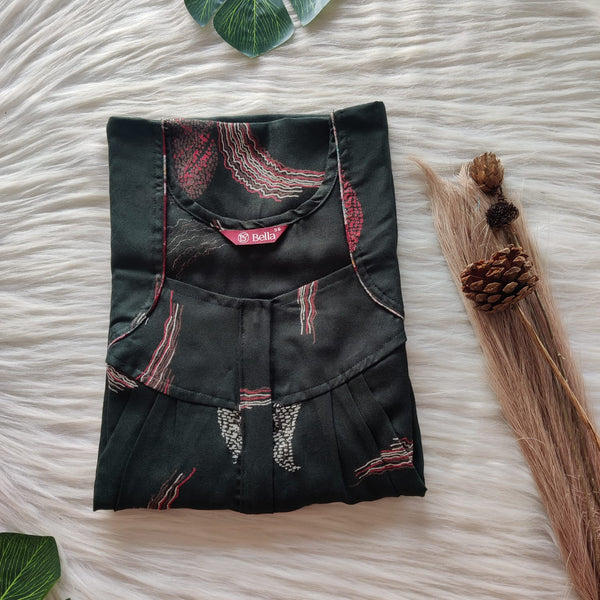 Dark Green Printed Alfine Plus Size Pleated Zip Nighty | Chest Width 50″| Length 54″-56″