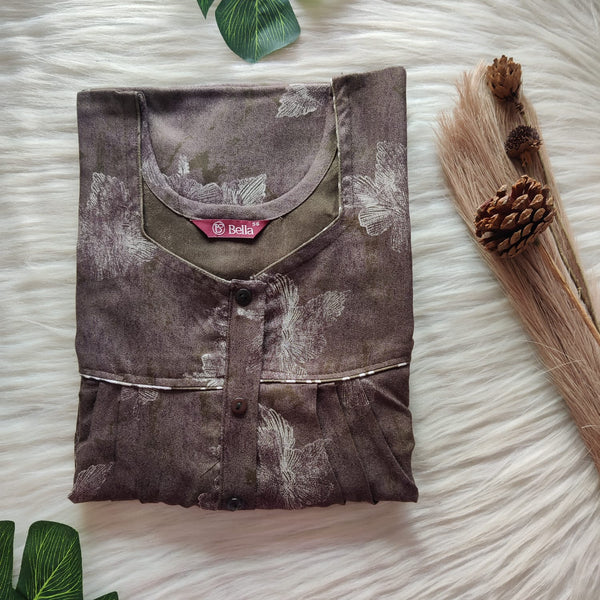 Brown Printed Pure Cotton Plus Size Pleated Zip Nighty | Chest Width 50″| Length 54″-55″