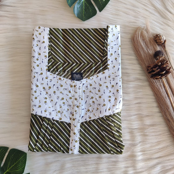 White And Green Stripes Premium Cotton Square Neck Pleated Nighty | Free Size | Chest Width 44″| Length 55″-56″