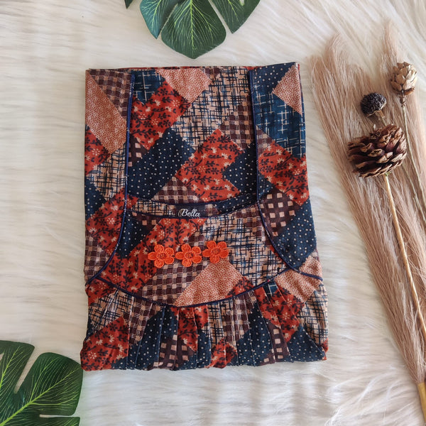 Orange And Black Printed Premium Cotton Three Flower Nighty |Free Size | Chest Width 44"| Length 54"-55"