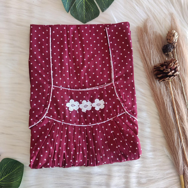 Maroon Dot Printed Premium Cotton Three Flower Nighty |Free Size | Chest Width 44"| Length 54"-55"