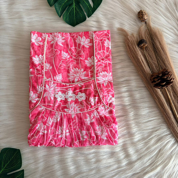 Pink And Blue Printed Discharge Cotton Three Flower Nighty |Free Size | Chest Width 44"| Length 54"-55"