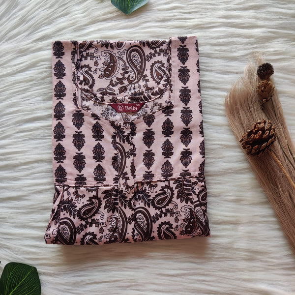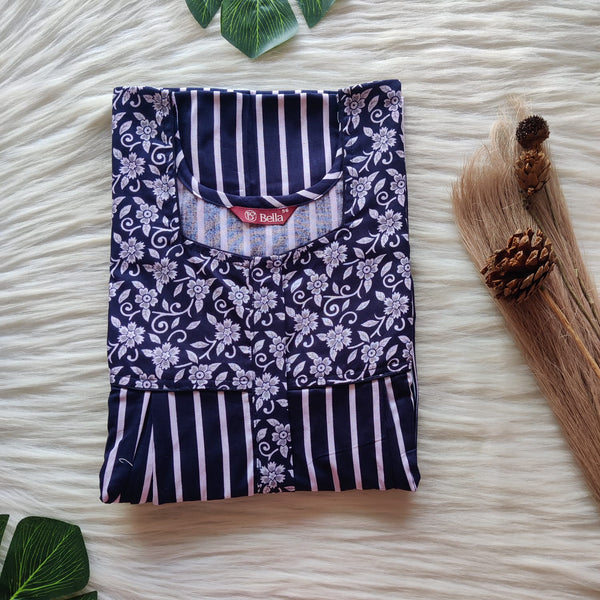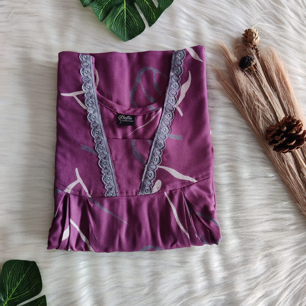 Wine Printed Alfine Two Side Vertical Zip Lace Nighty | Free Size | Chest Width 44″ | Length 56″